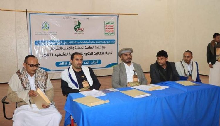 عقد فرع الهيئة العامة لرعاية أسر الشهداء بمحافظة تعز، اليوم الأحد، اللقاء التحضيري لتدشين فعاليات إحياء الذكرى السنوية للشهيد 1444هـ.