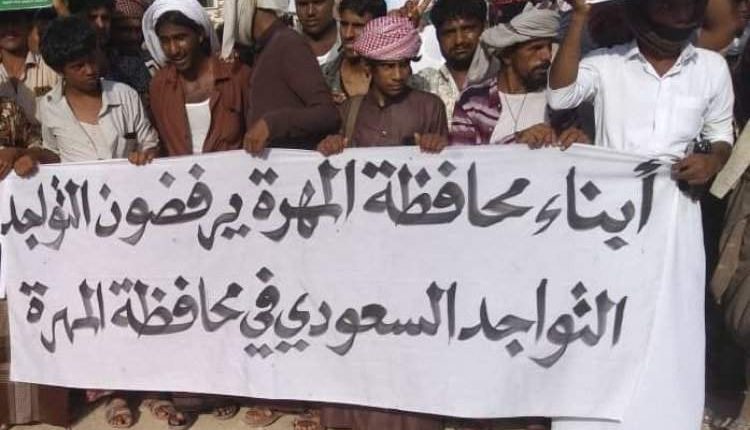 من جهته شن رئيس لجنة الاعتصام بمحافظة المهرة الشيح علي سالم الحريزي هجوما لاذعا على دولتي العدوان السعودية والامارات وجرائمهم بحق اليمنيين ومن ثم اعلانهم تقديم ودائع.