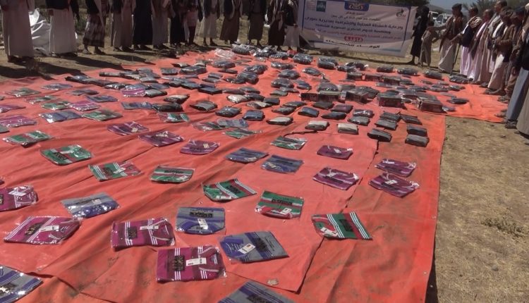 أبناء مديرية ضوران في محافظة ذمار يسيرون قافلة شتوية دعماً للمرابطين