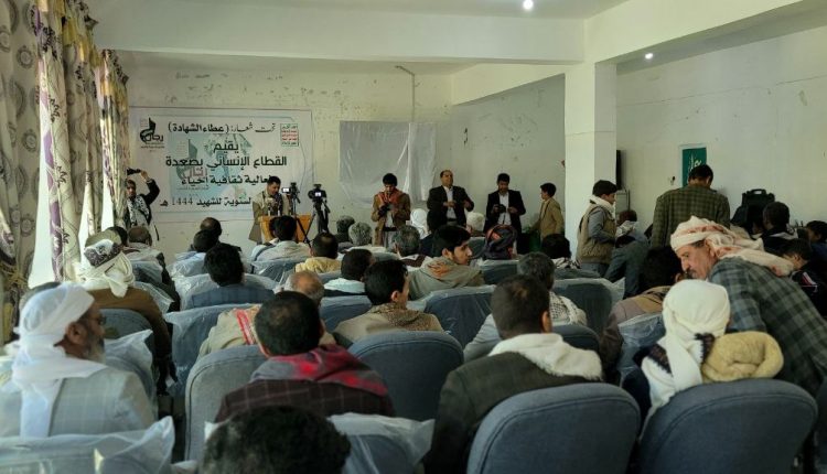 نظم القطاع الإنساني في محافظة صعدة اليوم فعالية ثقافية تحت شعار ” عطاء الشهادة” إحياءً للذكرى السنوية للشهيد 1444هـ.
