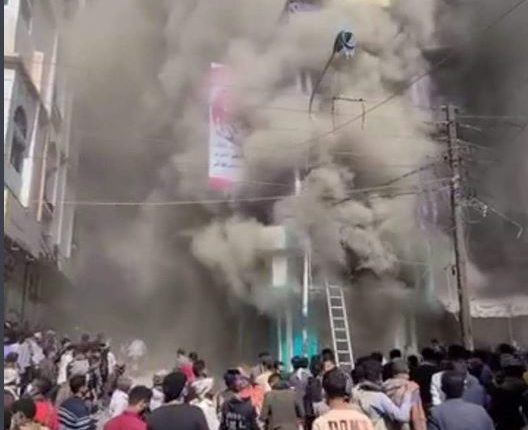دمر حريق هائل محلات تجارية بمركز تجاري ، الخميس ، في مدينة إب، (تفاصيل كاملة أسفل الفيديو)