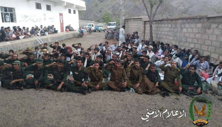 عقب ذلك زار منتسبي أمن المديرية وعدد من الشخصيات الاجتماعية روضة الشهداء بالمديرية وقراءة الفاتحة على أرواحهم .