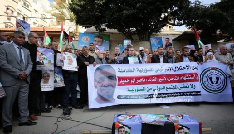 وأردف البطش :”ولتكن دماء الشهيد ناصر أبو حميد نوراً وقوداً لثورة عارمة وانتفاضة شاملة ضد جيش الاحتلال وقطعان مستوطنيه وحكومة التطرف الصهيونية، موجهاً برسالة لأحرار العالم ومؤسسات حقوق الإنسان بأن ما يمارسه الاحتلال من جرائم وممارسات من تعذيب وقتل متعمد وإهمال طبي في سجون الاحتلال يستوجب عليكم جميعاً التحرك قانونياً وسياسياً للتحرك بشكل عاجل لإنقاذ ابناءنا من ظلم وإرهاب الاحتلال المجرم، التي عكست جريمته بحق الأسير أبو حميد مدى الكراهية والعنصرية لهذا العدو، المجد للشهدء والشفاء للجرحى والحرية للأسرى”.