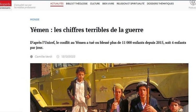 وقال موقع (regardsprotestants) الفرنسي، إن أرقام عدد ضحايا الحرب في اليمن رهيبة وتتحدث عن كارثة حقيقية، مؤكداً أن العدوان الأمريكي السعودي الإماراتي المستمر منذ 8 سنوات، أدى إلى مقتل وإصابة أكثر من 11 ألف طفل منذ عام 2015م، أي بمعدل 4 أطفال يوميا وفقاً لمنظمة اليونيسف، فيما تتحدث الأرقام عن الكارثة الإنسانية المستمرة في هذا البلد.
