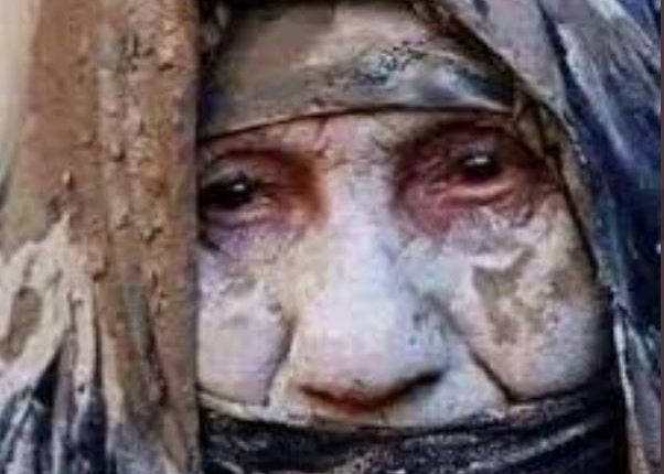 بعد قصف السعودية لمنزلها وقتل جميع أفراد أسرتها خرجت هذه الأم من تحت الانقاض لتبكي دماً قهراً وكمداً.