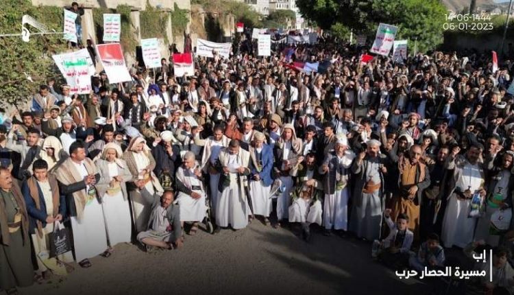 مسيرة جماهيرية لأبناء المربع الشمالي بمحافظة إب تنديداً بحصار العدوان