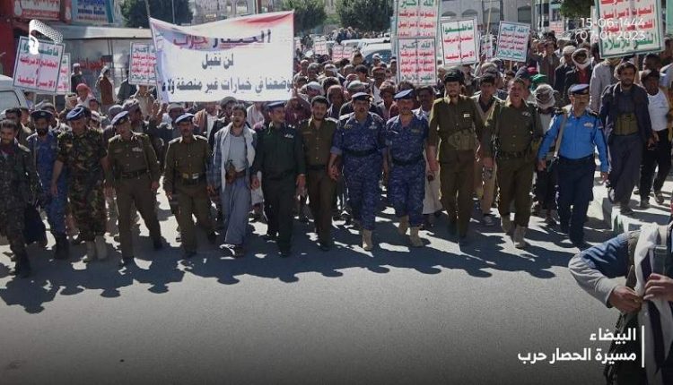 البيضاء.. مسيرة جماهيرية حاشدة للتنديد باستمرار الحصار