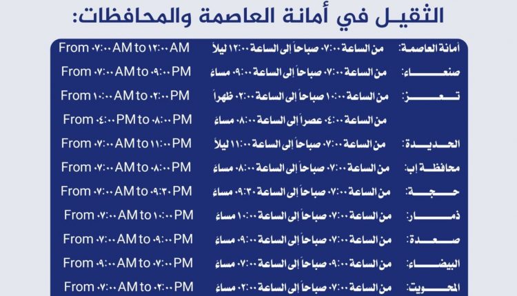المرور: أوقات منع دخول قاطرات النقل الثقيل العاصمة صنعاء والمحافظات المرور: أوقات منع دخول قاطرات النقل الثقيل العاصمة صنعاء والمحافظات Last updated يناير 14, 2023 Share يمني برس- انفوجرافيك Share
