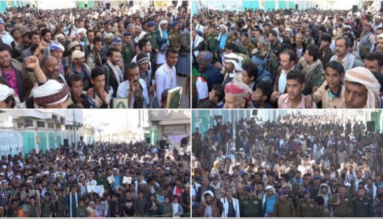 وفي المسيرة اعتبر وكيل المحافظة للوحدات الإدارية عبدالله الجمالي في كلمة السلطة المحلية في المحافظة، الوقفات الاحتجاجية والمسيرات الحاشدة رسالة لأعداء الأمة منددة بجريمة حرق نسخة من المصحف الشريف والمساس بالأمة وعقيدتها ودينها.