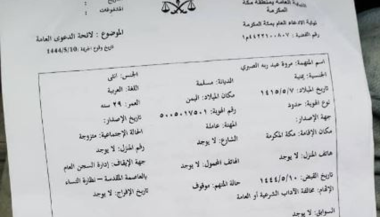وأفادت مصادر بأن امرأة يمنية تدعى مروة عبدربه الصبري “29 عاماً” تعرضت للاعتقال أثناء توجهها إلى الحرم المكي لأداء مناسك العمرة، إلا أنها تعرضت لاهانة من شرطية على بوابة الحرم قالت لها “اليمنيين ما انتم طيبين”، إلا أنها ردت على تلك الاهانة بالقول “أنتم يالسعوديين دمرتم بلدنا” وهي حقيقة ماثلة للجميع ويقر بها العالم.