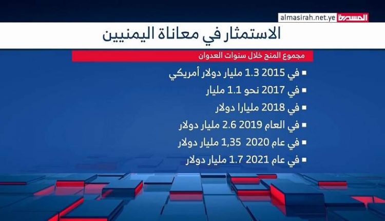 أمام هذه الأرقام الفلكية، تستمر الكارثة الإنسانية، كارثة تسهم الأمم المتحدة ودول العدوان في تعميقها أكثر فأكثر، إذ كان الأحرى بها وبدول العدوان بدلاً من الاستثمار والمتاجرة بمعاناة اليمنيين، أن تضغط باتجاه إنهاء أسباب الأزمة، ومنع المتسببين بها، من خلال رفع الحصار كلياً عن مطارات وموانئ اليمن، وتمكين اليمنيين من الاستفادة من خيراتهم وثرواتهم النفطية والغازية والسمكية بدلاً من أن تنهبها وتعبث بها دول العدوان والمرتزقة.