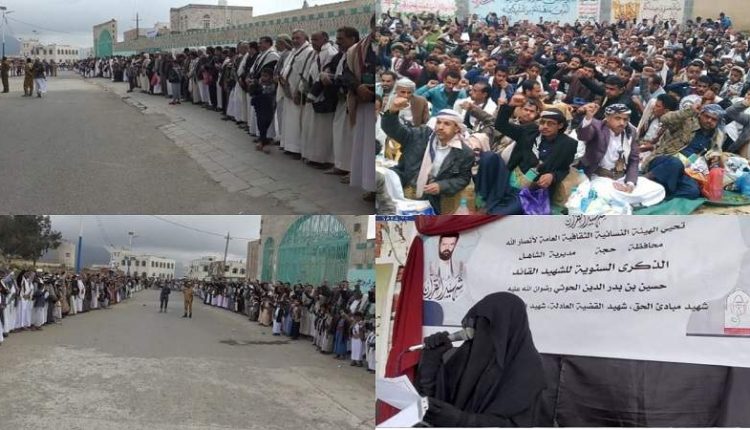 أقيمت في مديريات محافظة حجة، اليوم الجمعة، وقفات وفعاليات ثقافية ونسائية بمناسبة الذكرى السنوية للشهيد القائد حسين بدر الدين الحوثي رضوان الله عليه.