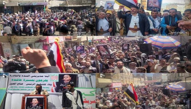 كما شهدت مديريتا يريم والنادرة مسيرتين لأبناء السدة والنادرة ويريم والرضمة بمشاركة مدراء المديريات وقيادات محلية وتنفيذية وأمنية وعسكرية ووجهاء ومشايخ وشخصيات اجتماعية.