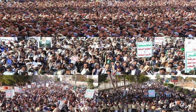 محافظة ذمار تشهد مسيرة حاشدة وفاء للشهيد الصماد وتضامناً مع الشعب الفلسطيني وتحذيراً لدول تحالف العدوان