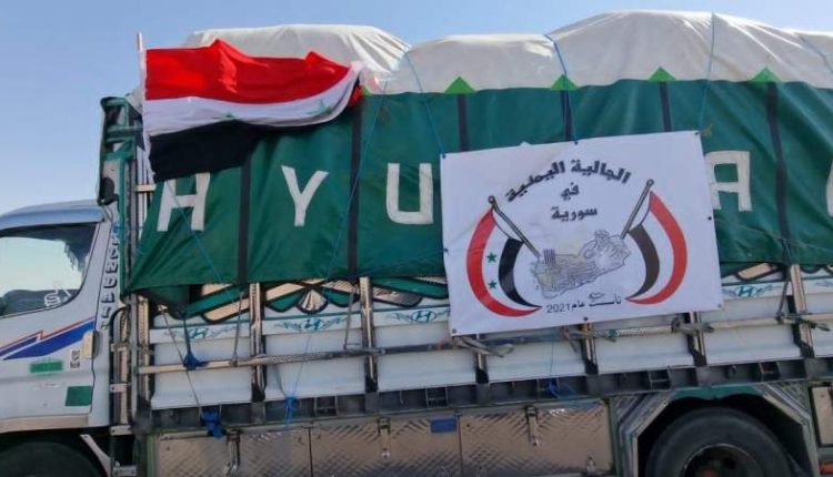 وكانت الجالية اليمنية في سوريا قد سيرت في الـ18 من الشهري الحالي قافلة إغاثية أولى إلى محافظة اللاذقية تحت شعار “من اليمن إلى الشام كلنا مقاومة”.