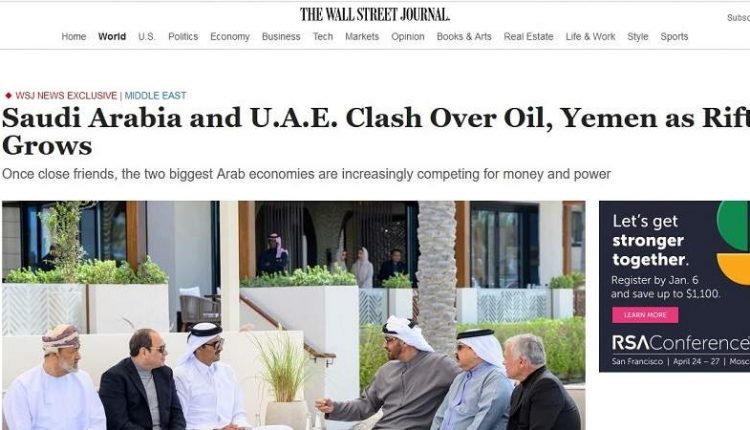 كشفت صحيفة أجنبية عن تصاعد الخلافات بين دولتي العدوان السعودية والإمارات على مستوى قادة البلدين بسبب حرب اليمن وأوبك.