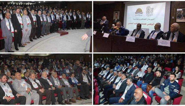 نظمت جمعية الأخوة الفلسطينية اليمنية بالتعاون مع مؤسسة القدس الدولية واللجنة الشعبية لدعم فلسطين أمس الأحد، في العاصمة السورية دمشق، مهرجاناً خطابياً بمناسبة اليوم الوطني لصمود الشعب اليمني في مواجهة العدوان الأمريكي السعودي الإماراتي.