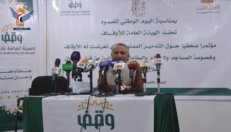 وأكد وكيل الهيئة لقطاع المساجد والمبرات الدكتور عبدالله القدمي في مؤتمر صحفي عقدته الهيئة اليوم، أهمية المؤتمر لاطلاع الرأي العام عن حجم الأضرار والخسائر التي تعرضت لها الأوقاف بسبب العدوان.