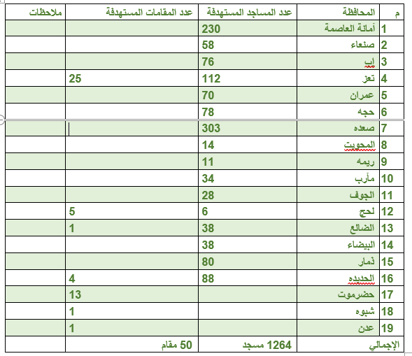 أولا ً: احصائية بعدد المساجد والمقامات المستهدفة من قبل العدوان: