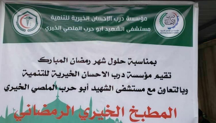 دشنت مؤسسة درب الإحسان الخيرية للتنمية وبالتعاون مع مستشفى الشهيد أبو حرب الملصي الخيري المطبخ الرمضاني الخيري، بمديرية سنحان محافظة صنعاء.