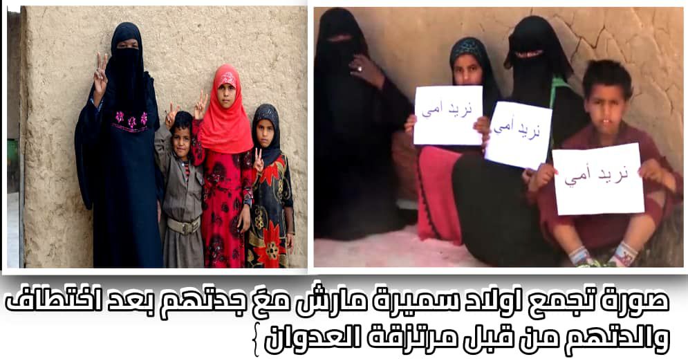 واختطفت سميرة مارش من بين أطفالها الثلاثة عام 2018م، من مدينة الحزم في محافظة الجوف ونقلت إلى سجون مأرب المحتلة، ثم قام مرتزقة العدوان بنقلها إلى أحد المعتقلات السعودية، بسرية تامة وتسليمها مع 4 أسرى آخرين إلى ضابط سعودي يدعى عبدالعزيز المطيري، دون مراعاة لحرمتها ولا لمعاناة أبنائها وأهلها، ولا للقيم والأعراف والأخلاق و الإنسانية.