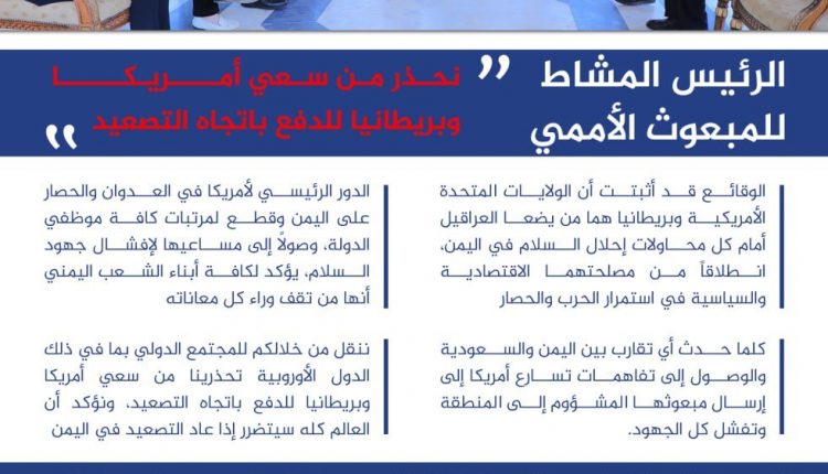 رسائل الرئيس النارية والتحذيرية للمبعوث الأممي رسائل الرئيس النارية والتحذيرية لأمريكا وبريطانيا رسائل الرئيس النارية والتحذيرية لأمريكا وبريطانيا On مايو 1, 2023 Share يمني برس- انفوجرافيك رسائل الرئيس النارية والتحذيرية للمبعوث الأممي أمريكاالرئيس المشاطالمبعوث الأممي الخاصبريطانيادول العدوان Share