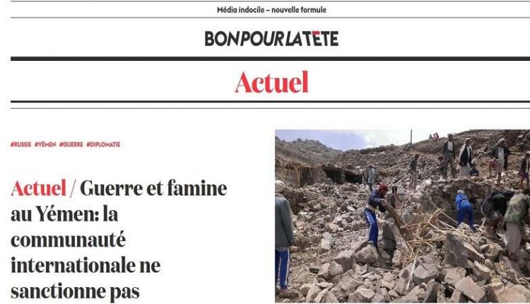 وقالت صحيفة (Bon pour la tete) أنه ومنذ بدء التدخل العسكري لقوات التحالف العربي بقيادة المملكة العربية السعودية أواخر مارس من العام 2015، دمرت المئات من الطرق الحيوية، مما منع السكان المدنيين من الفرار من العمليات القتالية بسرعة كافية أو إجلاء الجرحى.