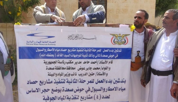كما وضعوا حجر الأساس لأربعة مشاريع تغذية المياه الجوفية في مديريتي سحار والصفراء، ودشنوا العمل في المرحلة الثانية من مشاريع حصاد مياه الأمطار والسيول في حوض صعدة المائي.