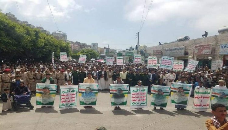 وباركت الحشود الغفيرة رد حركات المقاومة التي تخوض معركة ثأر الأحرار بكل بسالة وإقدام وشجاعة وتضحية.