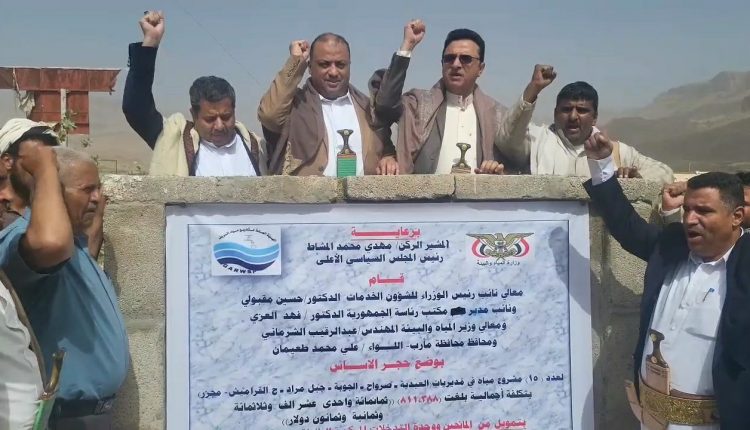 من جانبه أكد وزير المياه والبيئة أن افتتاح ووضع حجر الأساس لمشاريع مياه في مأرب، يأتي في إطار اهتمام القيادة الثورية والمجلس السياسي الأعلى والحكومة بتلمس احتياجات المواطنين في مديريات المحافظة من مشاريع المياه.