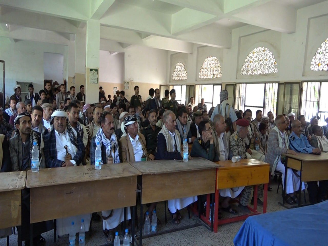 وألقيت كلمة باسم السلطات المحلية والمكاتب الإشرافية بالمديريات الغربية ألقاها مدير عام مديرية الحزم زكريا المساوى استعرض فيها البدايات والإرهاصات التي مر بها هذا الشعار منذ أن صرخ به الشهيد القائد وما تعرض له في سبيل هذا الشعار من معاناة توجها بدمه وحياته ..