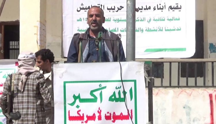 ودعا أبناء مديرية حريب القراميش لمقاطعة المنتجات الأمريكية والإسرائيلية، ومواصلة الصمود ورفد الجبهات لإفشال مؤامرات قوى العدوان الأمريكي السعودي للنيل من وحدة اليمن وأمنه واستقراره.