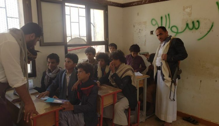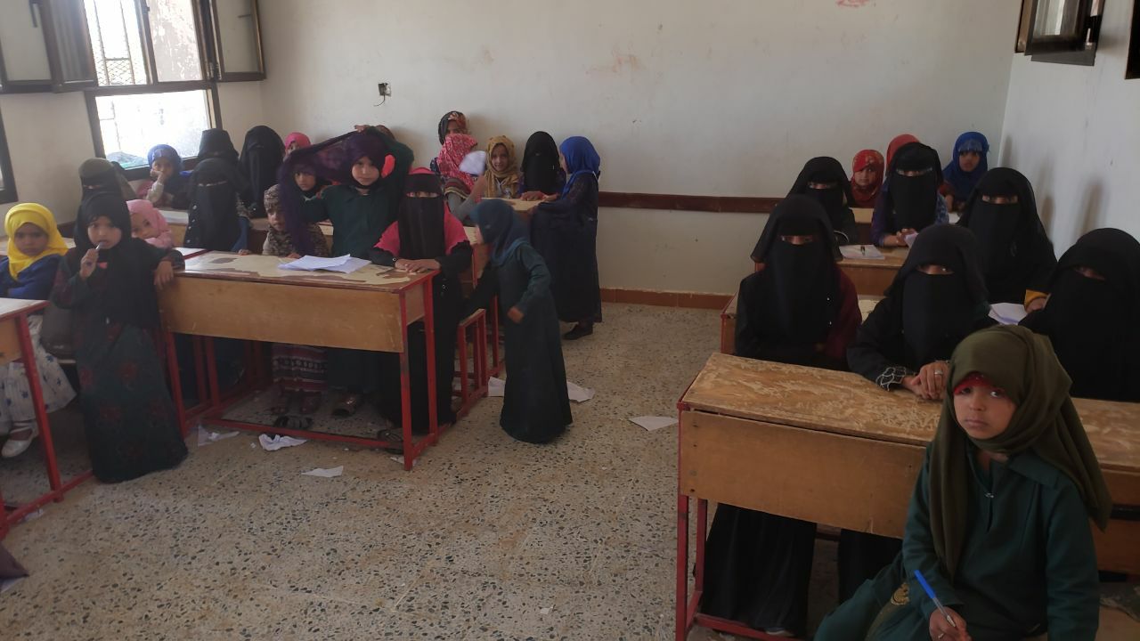 الطاقم الإعلامي في إذاعة الجوف يطلع على سير استمرار العملية التعليمية والأنشطة الرياضية بمدرسة  الإمام زيد في اليتيمة ومدرسة عفي بمديرية حب الشعف