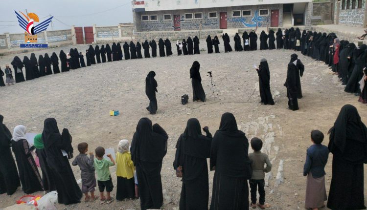 واعتبرت المشاركات في الوقفات التي أقيمت بمديريتي شرس وقفل شمر جرائم العدوان السعودي على اليمن امتداد لمجزرة تنومه التي راح ضحيتها أكثر من 3 آلاف حاج.
