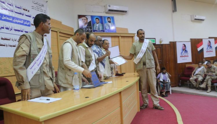 تخلل الحفل الذي حضره مدير فرع الشئون الانسانية بالمحافظة جابر الرازحي وممثلي من اللجنة الدولية للصليب الأحمر وبعثة اتفاق الحديدة” أونمها” وعدد من القيادات العسكرية، تكريم 74 مشاركا بالشهادات التقديرية.