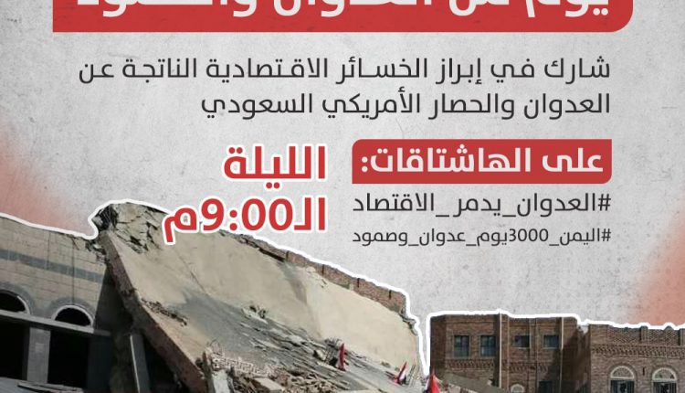 وستكشف الحملة من خلال تغريداتها في إبراز الخسائر الاقتصادية الناتجة عن العدوان والحصار الأمريكي السعودي على بلادنا طيلة 3000 يوم من العدوان.