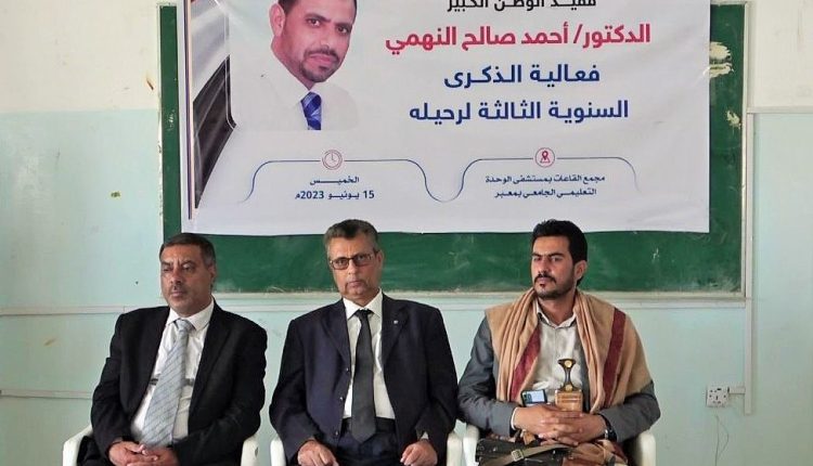 اقيم بمحافظ ذمار اليوم الخميس فعالية الاحياء الذكرى السنوية الثالثة لرحيل المفكر الدكتور أحمد صالح النهمي عضو مجلس الشورى، والأمين العام السابق لاتحاد القوى الشعبية.