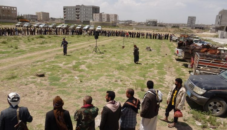 سير أبناء مديرية عنس بمحافظة ذمار اليوم، قافلة عينية دعما للمرابطين في الجبهات تحت شعار “أعيادنا جبهاتنا”.