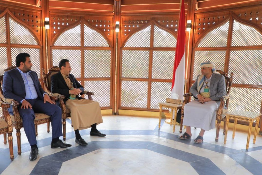ناقش الرئيس مهدي المشاط رئيس المجلس السياسي الأعلى اليوم، في لقاءين منفصلين المستجدات المتصلة بالعديد من الملفات بينها ملف الخزان العائم صافر مع كلا من نائب وزير الخارجية حسين العزي ورجل الأعمال فتحي فاهم، ونائب رئيس الغرفة التجارية حسن السياني.