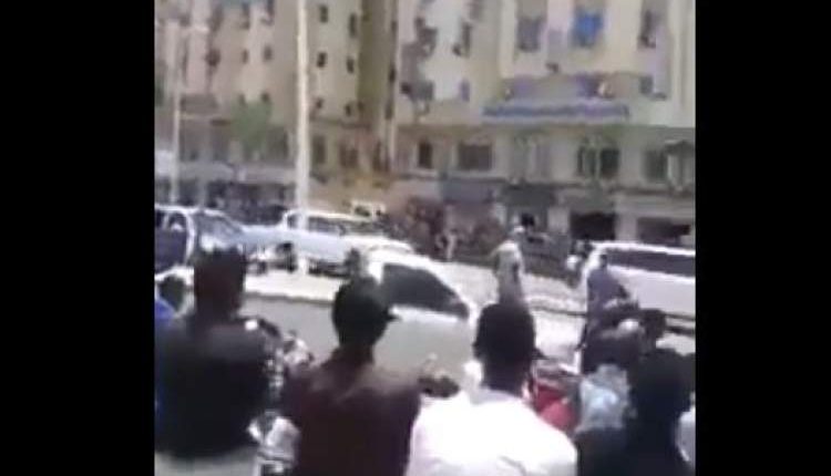 ووثق ناشطون هتافات المواطنين اثناء مرور موكب المدعو العليمي في احد شوارع المدينة.