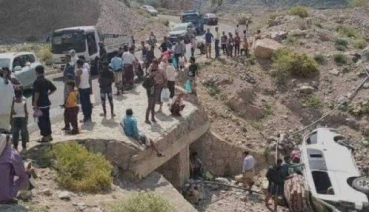 توفي وأصيب تسعة مواطنين جراء حادث مروري مروع في إحدى الطرق الوعرة المؤدية إلى مدينة تعز (جنوب غربي اليمن).