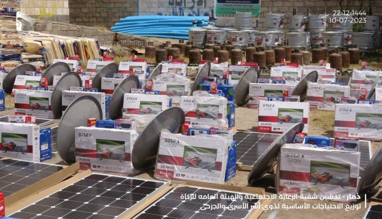 بدعم من الزكاة.. توزيع احتياجات أساسية لأسر الأسرى والجرحى المعاقين بذمار