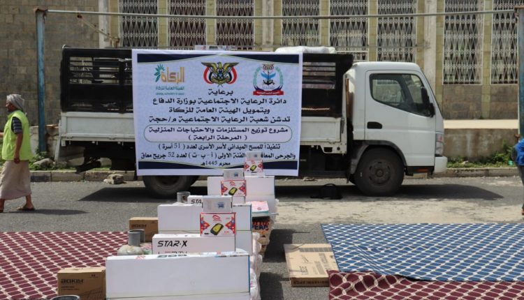 دشنت شعبة الرعاية الاجتماعية في حجة ومكتب الهيئة العامة للزكاة بالمحافظة اليوم المرحلة الرابعة من مشروع توزيع المستلزمات والاحتياجات المنزلية لأسر الاسرى والمفقودين والجرحى والمعاقين.