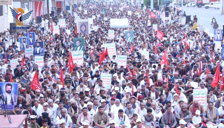 كما أكد أن احتشاد أبناء الحديدة بهذه الذكرى رسالة لدول العدوان وأدواتها باستمرار اصطفاف وتلاحم وصمود اليمنيين في مواجهة أعداء الوطن والحفاظ على الأمن والسيادة وعدم التنازل عن شبر من أراضيه.