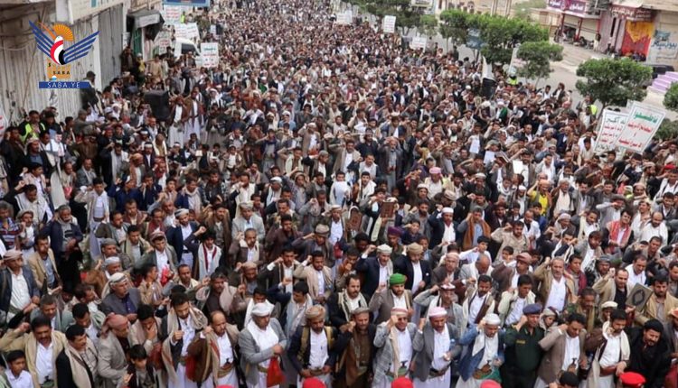 وأكد بيان صادر عن المسيرة تمسك أبناء الشعب اليمني بقضايا الأمة وفي مقدمتها القضية الفلسطينية والموقف المعادي للكيان الصهيوني والغطرسة الامريكية.