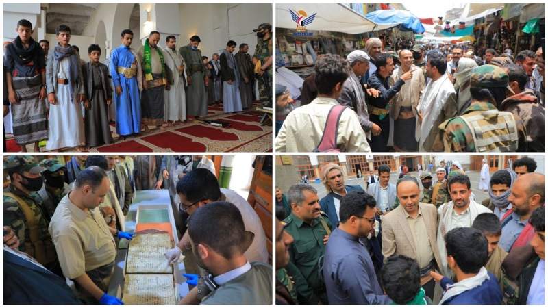 وعقب الصلاة زار الرئيس المشاط مكتبة المخطوطات بالجامع الكبير، واطلع على نفائس المخطوطات الموجودة في المكتبة ومنها مصحف الإمام علي عليه السلام، حيث شكر القائمين على المكتبة على جهودهم الكبيرة التي يبذلونها للحفاظ على المخطوطات النفيسة، مؤكدا أهمية إخراج هذا التراث العلمي إلى النور لتنهل منه الأجيال من أبناء الشعب اليمني.