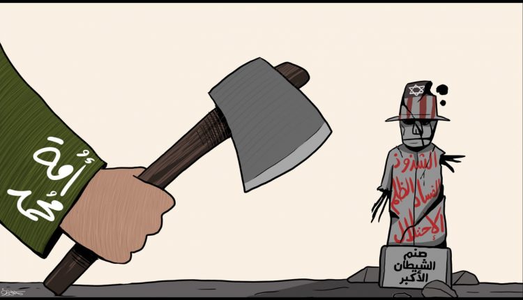 شاهد.. أمة “محمد” تحطم صنم الشيطان الأكبر – كاريكاتير