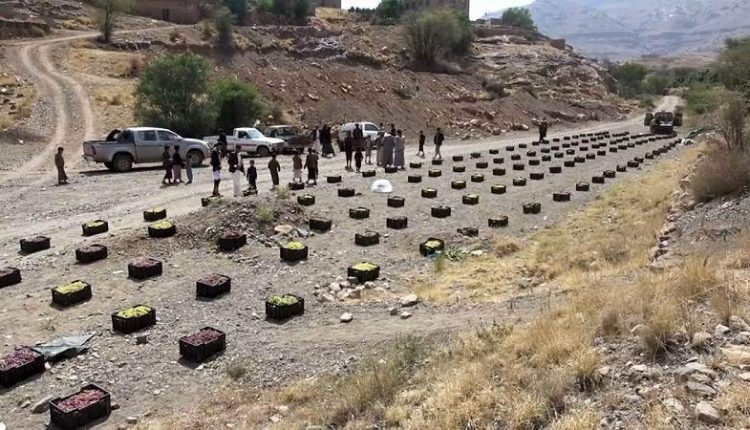 قدّم أبناء قرية بيت الحنمي بمديرية بني حشيش محافظة صنعاء اليوم الخميس، القافلة الخامسة من الأعناب للمرابطين في الجبهات.