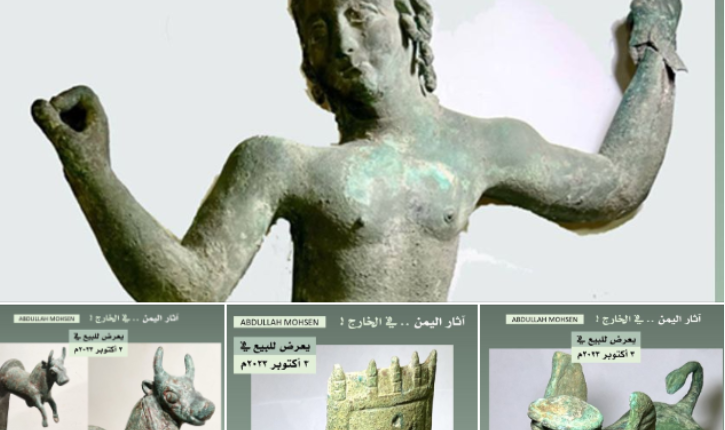 وأكد عبدالله محسن في صفحته على صفحته فيس بوك، تأكيداً لما نشره في الأيام الماضية، الإعلان رسمياً في كيان الاحتلال الإسرائيلي في تل أبيب، عن كاتالوج مزاد 3 أكتوبر 2023م الذي يقيمه عالم آثار الاحتلال الإسرائيلي روبرت دويتش، ويضم 373 أثرية منها 15 قطعة من آثار اليمن، تتكون من 5 قطع من المرمر، وعشر قطع برونزية، وتعويذة من الفضة.