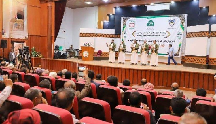 واستعرض جانبا من حياة وسير الرسول الأعظم ومكانته في نفوس اليمنيين، مؤكداً أن الاحتفال بالمولد النبوي، دليل على محبة الرسول الأعظم، والحرص على الاقتداء به قولاً وعملاً.